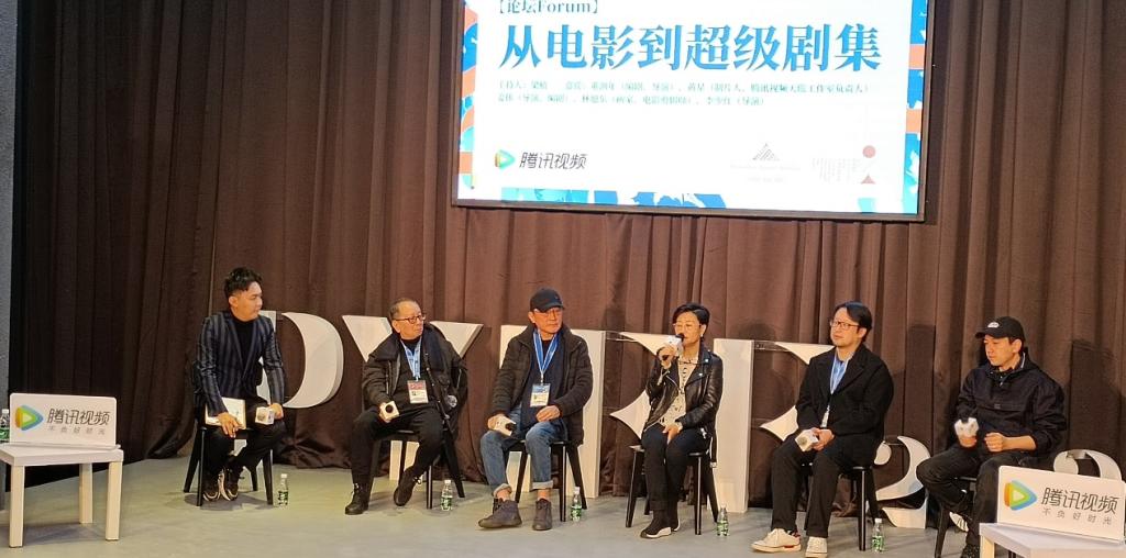 图7:论坛《从电影到超级剧集》(从左至右:梁植、林旭东、姜伟、李少红、董润年、黄星)