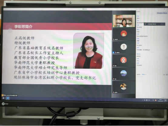 见习第一天,指导老师们组织全体学生聆听教育部全国优秀小学校长,广东省中小学名校长工作室主持人李彩芳校长的线上《看似寻常最奇崛 成如容易却艰辛》——给小学教育专业同学们的几点建议的讲座。李校长从教师的职业行为准则,小学教师的教学基本功和教育情怀与责任担当等方面,结合自身的成长经历,图文声茂,给师生们做了一次非常精彩而又深刻的讲座。