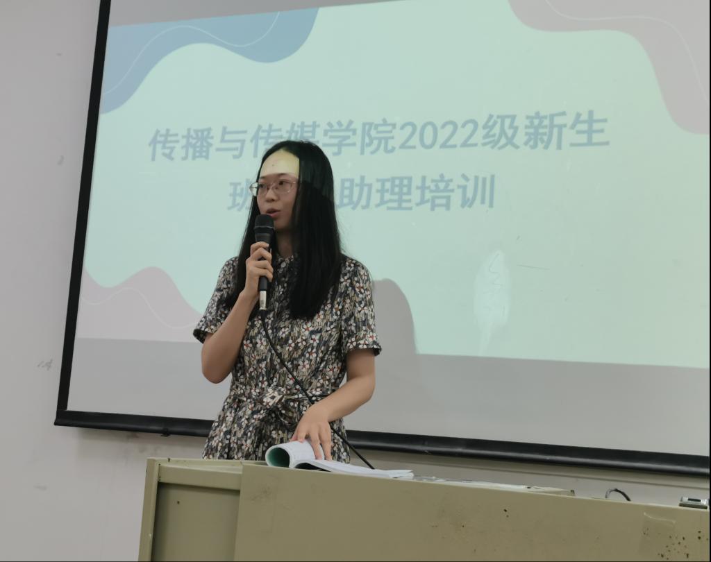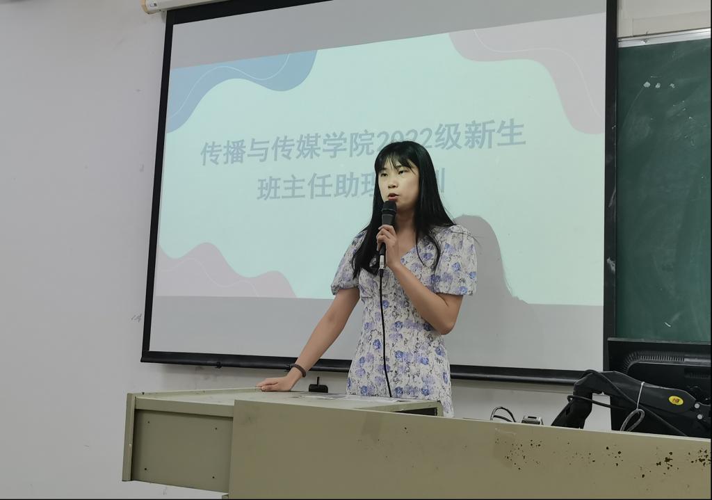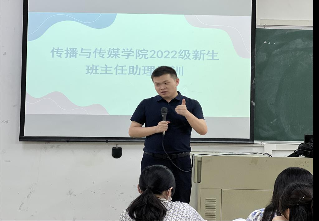 为引导新生班主任助理明确工作职责,了解新生工作重点,增强班助的责任感和使命感,确保2022年迎新工作有序进行,6月28日下午,传播与传媒学院在厚德楼C207召开2022级新生班主任助理培训会。出席本次会议的有学院党委副书记、学工办副主任谢清明,辅导员王洁、洪明霞、符元美、刘佳蓓、彭美娴、王铃蓉以及2022级新生班主任助理。