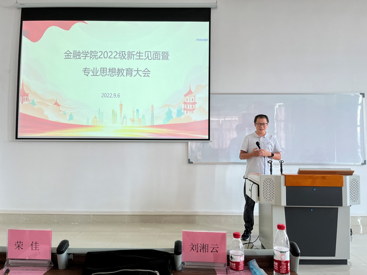 金融工程系副主任荣佳、经济与金融系副主任魏攀、金融科技系副教授李战国,分别为22级新生进行了专业教育。