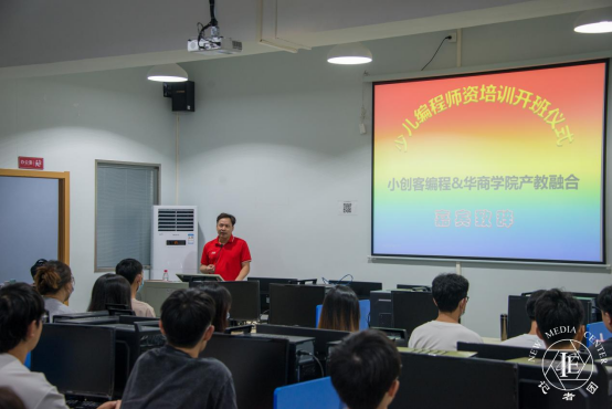 项目团队经过一个月的共同努力,在软件工程、计算机科学与技术、数据科学与大数据技术、电子商务四个专业中筛选出了共计48名学生入选该项目,于2022年10月17日在励志楼B601(砺锋科技众创空间)举办了主题为少儿编程师资班培训的开班仪式,仪式由数据科学学院产教融合工作小组专员杨波主持。