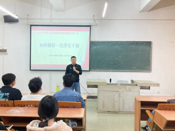 谢清明老师以“如何做好一名学生干部”为题与同学们做了分享交流,他从学生干部的身份、为什么要做学生干部、怎样做好学生干部三个方面做了细致分析,对与会学生党员、学生干部提出了几点要求: