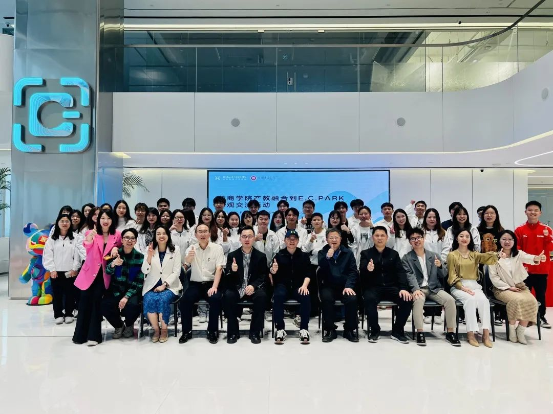 为深入贯彻落实习近平总书记关于就业工作的重要指示精神和党中央国务院决策部署,促进人才资源转化,深化校企合作,推动学校产教融合工作高质量发展,搭建在校学生的实践锻炼平台,拓宽毕业生就业渠道,落实学校刘少波副校长新学期对经济贸易学院调研时提出的指导意见,2022年3月14日,经济贸易学院组织师生代表到E.C.PARK云享新经济生态园参观学习。经济贸易学院李广明院长、院长助理石立副教授、经济贸易学院党委副书记宋元跃、跨境电商系主任李伟教授、副主任曹维、国际商学系主任罗衡军、专任教师张嘉欣和40余名学生参加此次交流会。E.C.PARK董事长吴智荣、园区相关负责人及园区内优质企业代表热情接待我校一行。