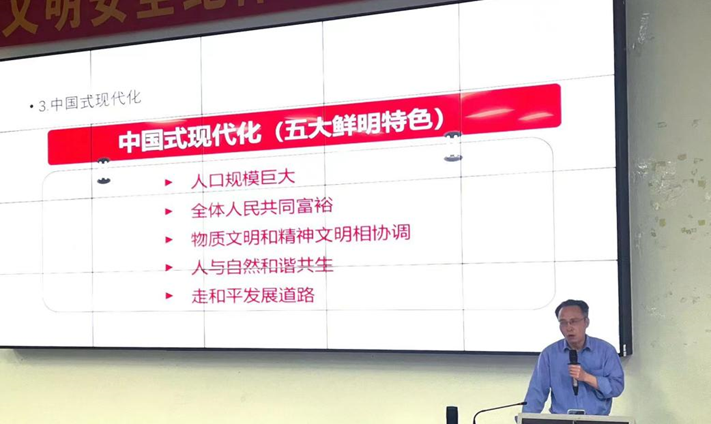 王教授通过讲解“现代化的定义”“现代化的历程”“中国式现代化五大鲜明特色”详细介绍了什么是中国式现代化,并指出在推进现代化建设过程中,必须坚持党的领导,紧紧把握基本国情,制定符合中国国情的发展战略规划,走符合中国自己国情、自己特点的社会主义现代化道路。