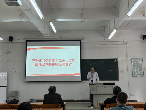倪列怀书记就学习党的二十大精神、学习习近平新时代中国特色社会主义思想以及教职工师德师风问题发表讲话。倪书记指出,2023年是学习贯彻党的二十大精神开局之年,是落实“十四五”规划关键之年,学院全体教职工要把学习宣传贯彻党的二十大精神、学习习近平新时代中国特色社会主义思想作为首要政治任务,在全面学习、全面掌握、全面落实上持续用功,深刻领悟“两个确立”的决定性意义,坚决做到“两个维护”。