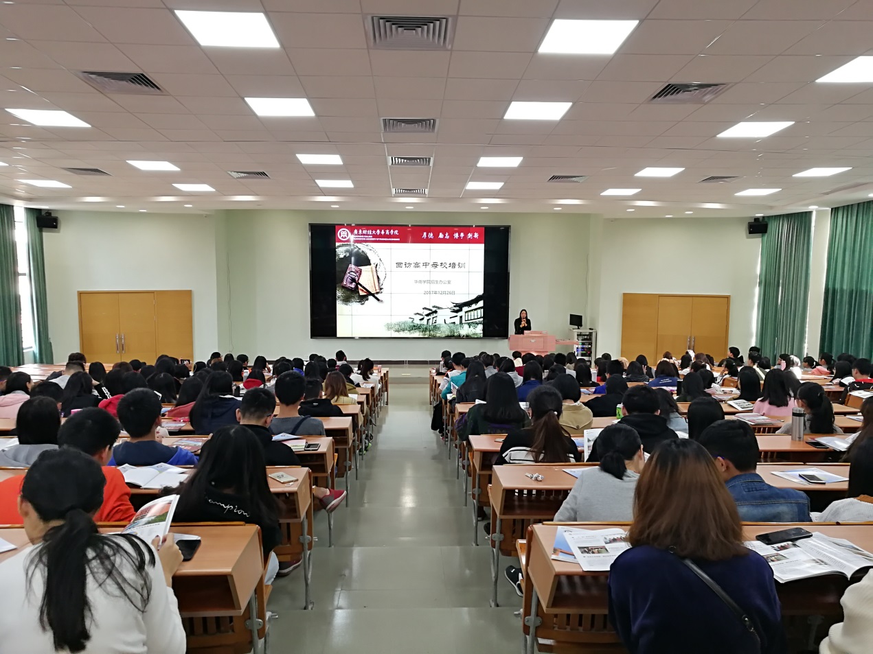 12月26日下午,我们招生办在励志楼C408阶梯教室召开回访高中母校活动培训会。学院招生办副主任姚见花,港澳台侨招生办主任黄伟新,华商启德学府国际学院院长赵迅,学院办公室熊子珂老师,招生办冯勤奋老师,以及107组回访团队共260多人参加了培训会。